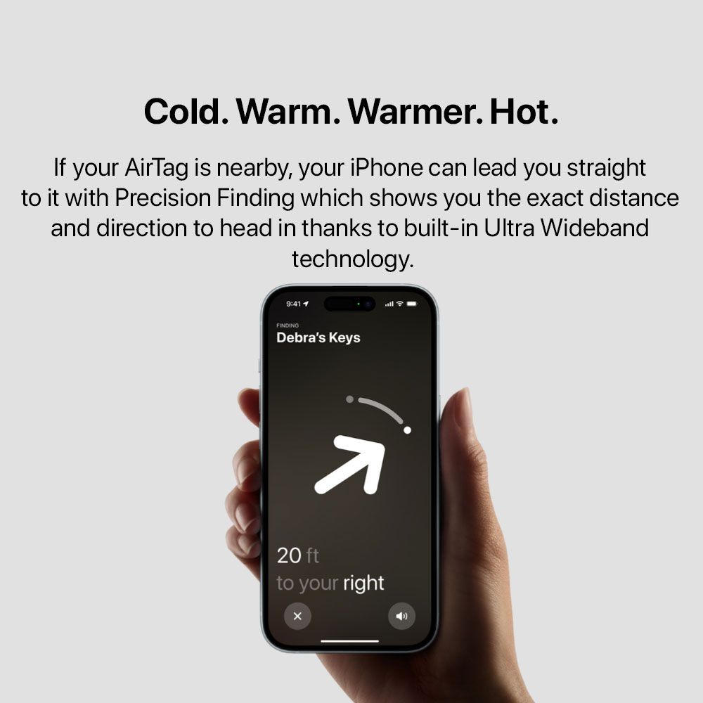 • Precision Finding with Ultra Wideband technology leads you right to your nearby AirTag (on select iPhone models) (1)