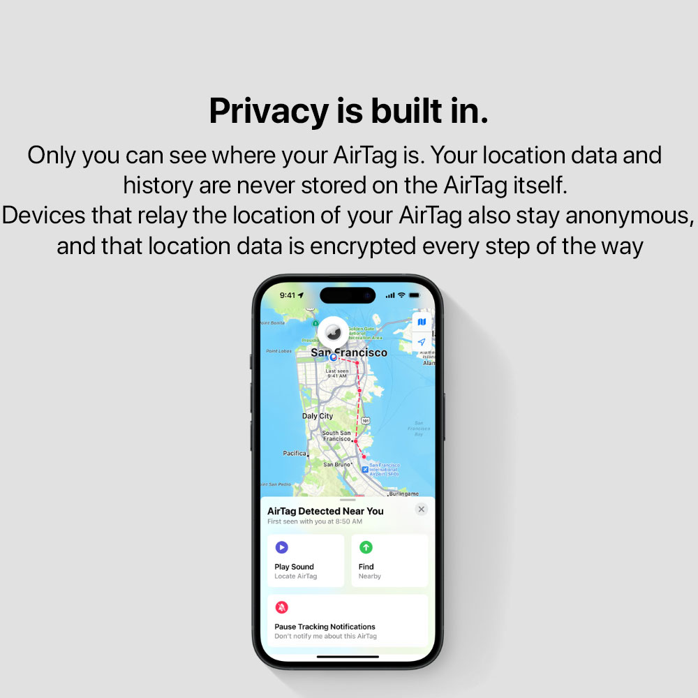 • Location data and history are never stored on AirTag+