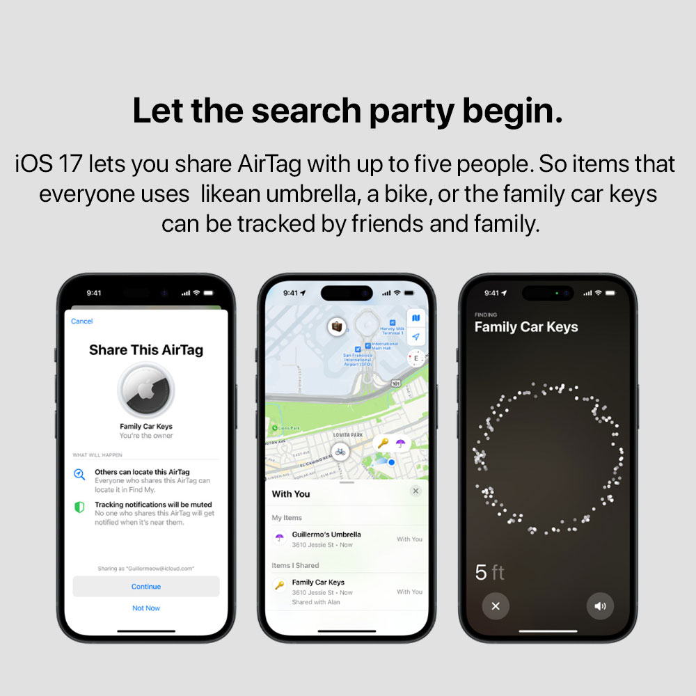 • Simple one-tap setup instantly connects AirTag with your iPhone or iPad