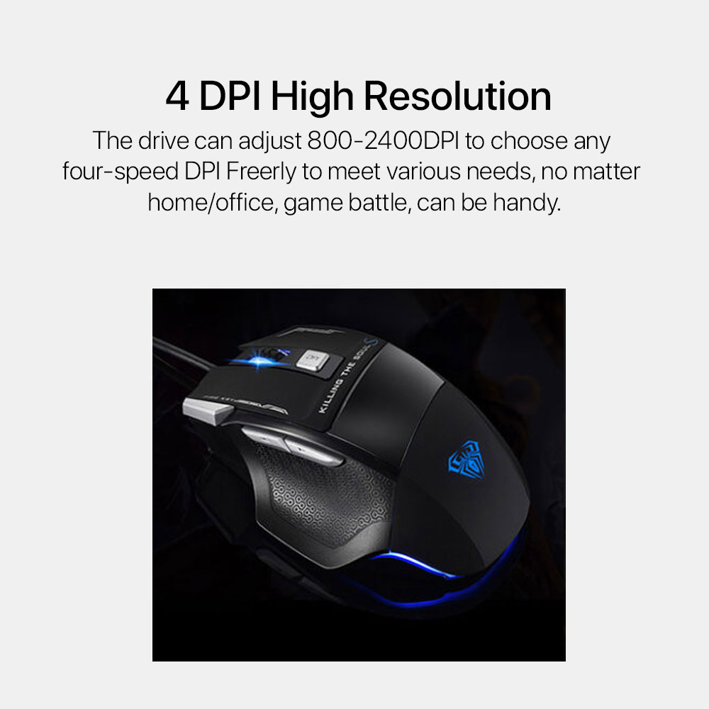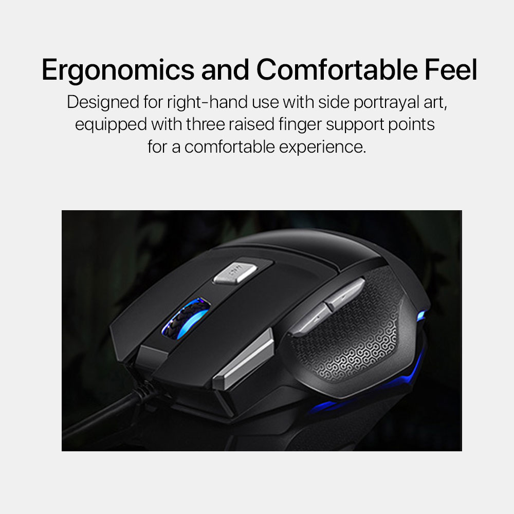 ▸ 800-1200-1600-2400-4800 DPI ▸ 125Hz ▸ 7 Programmable Buttons ▸ 704E Game Chip ▸ Ergonomic Design
