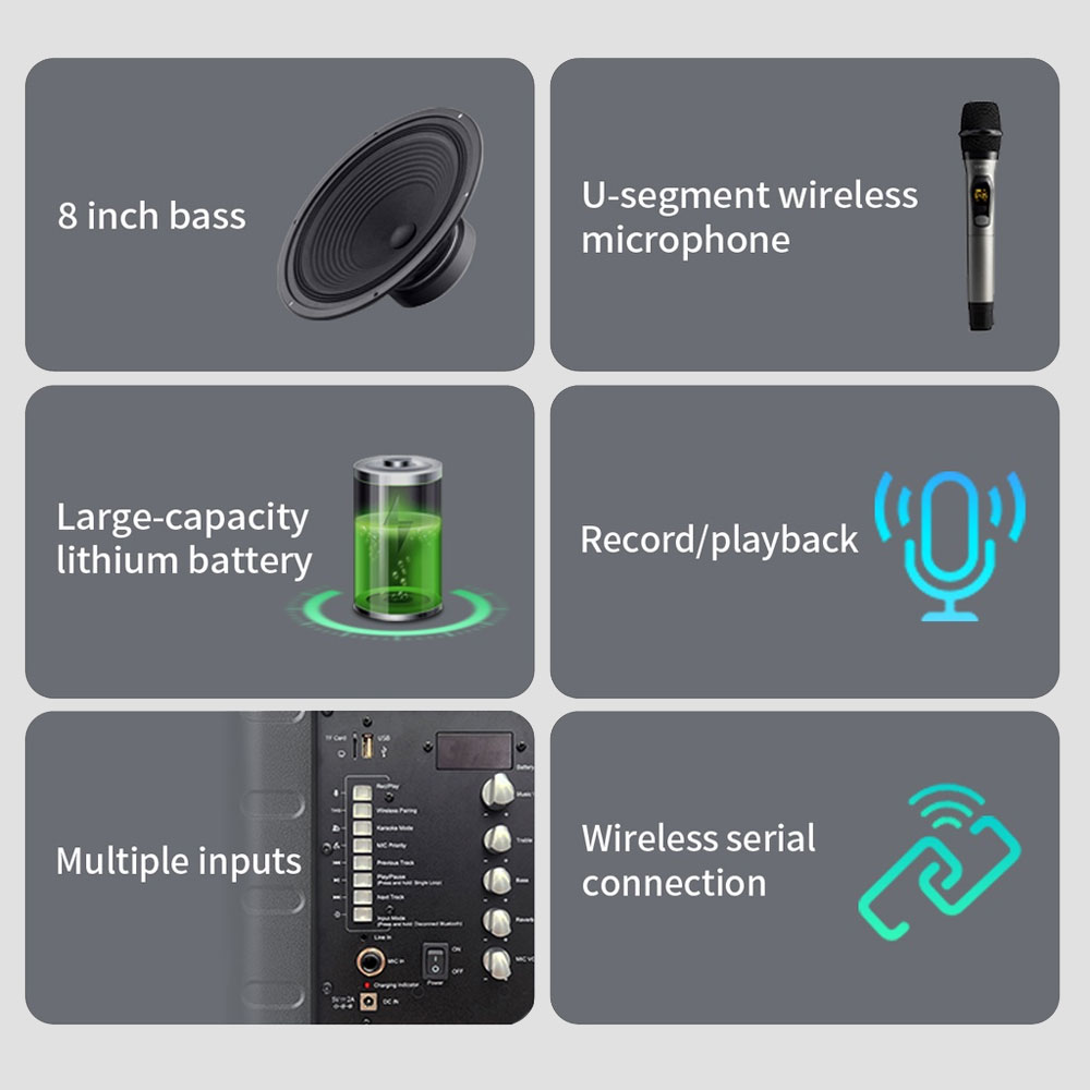 - Input types : Bluetooth, AUX, USB , TF-Card