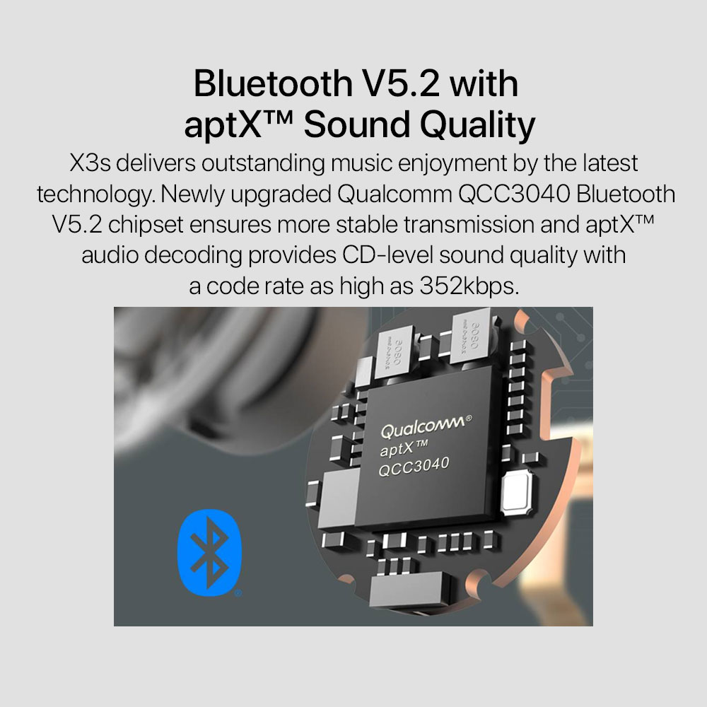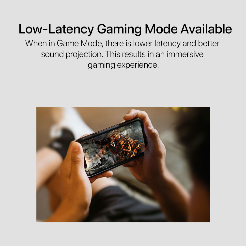 • Qualcomm® TrueWireless™ Mirroring technology supports dynamic and seamless bud-to-bud role swapping