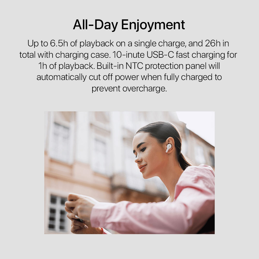 • Dual MICs and AI ENC enable clear voice capture and reduce surrounding noise
