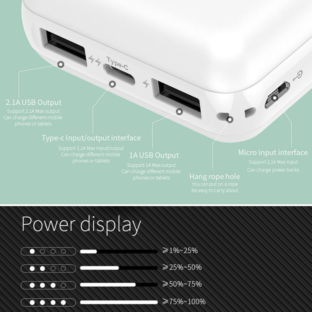 - Type-C (Input/Output): DC5v-2.1A (Max)