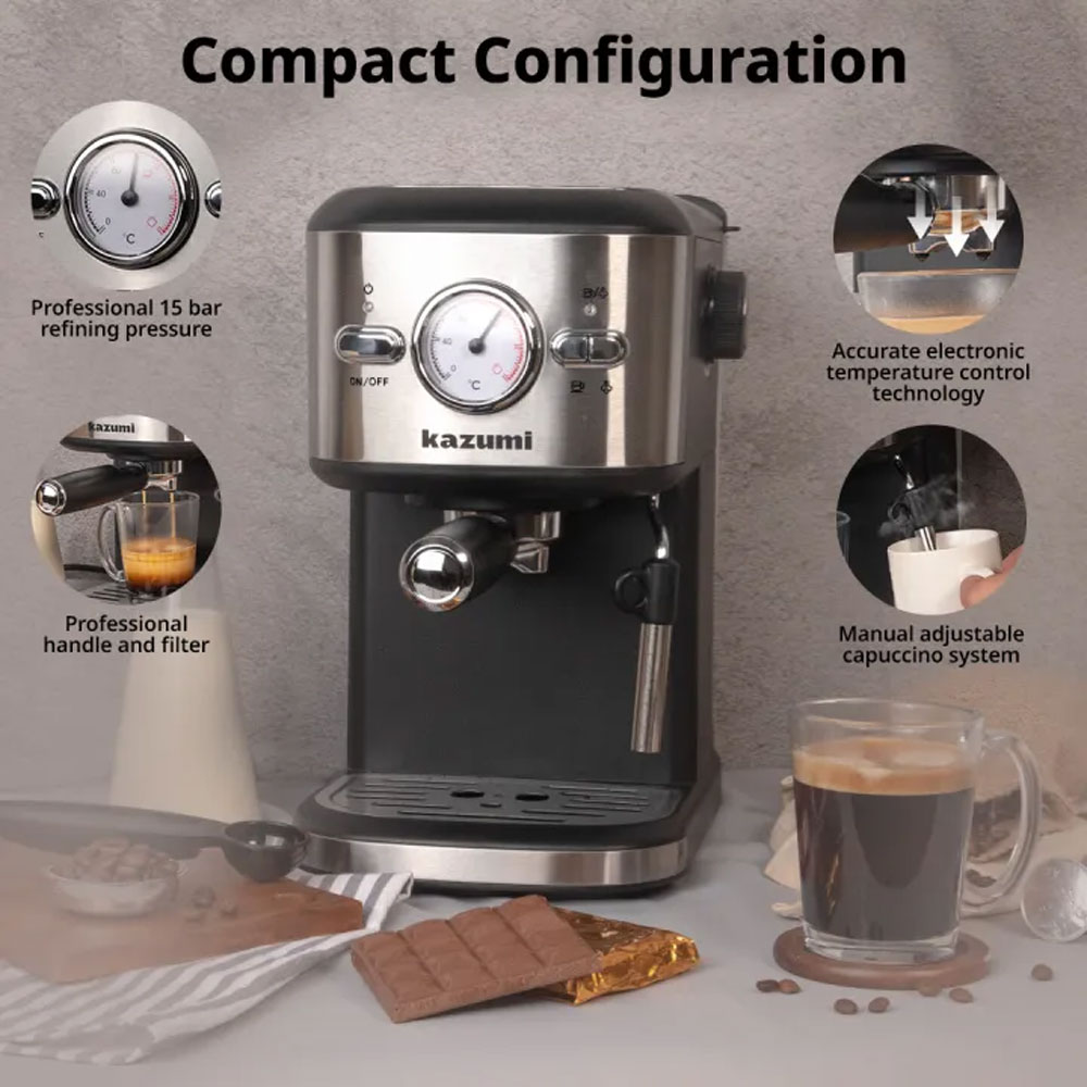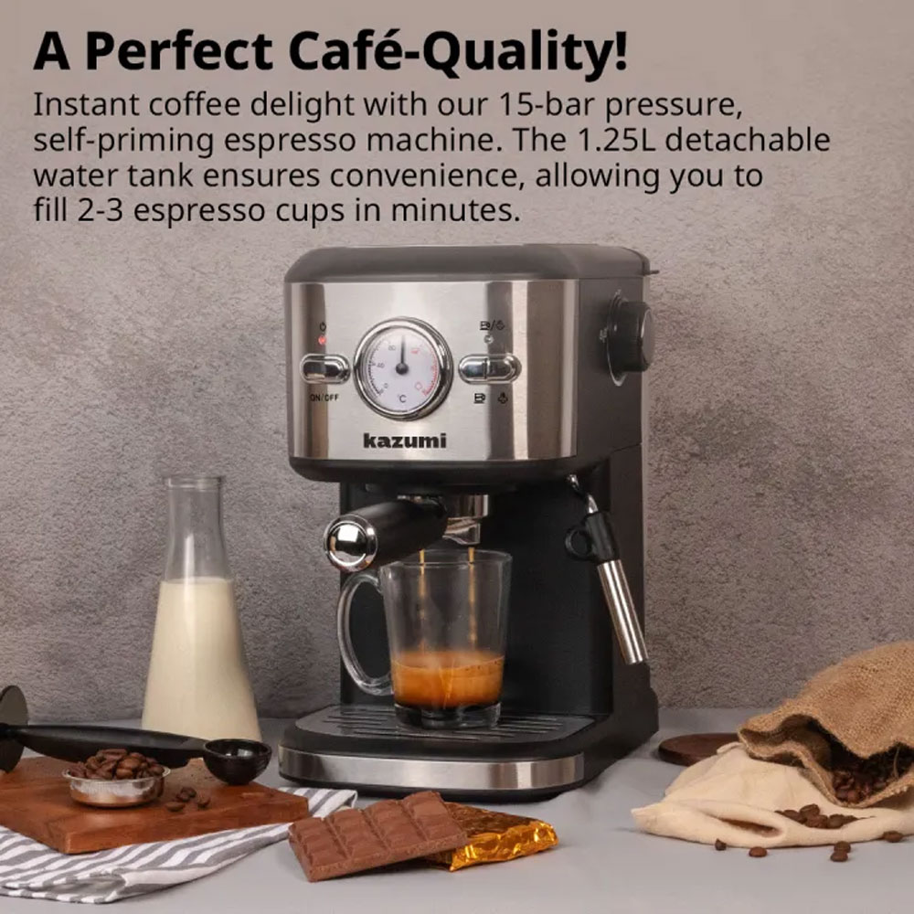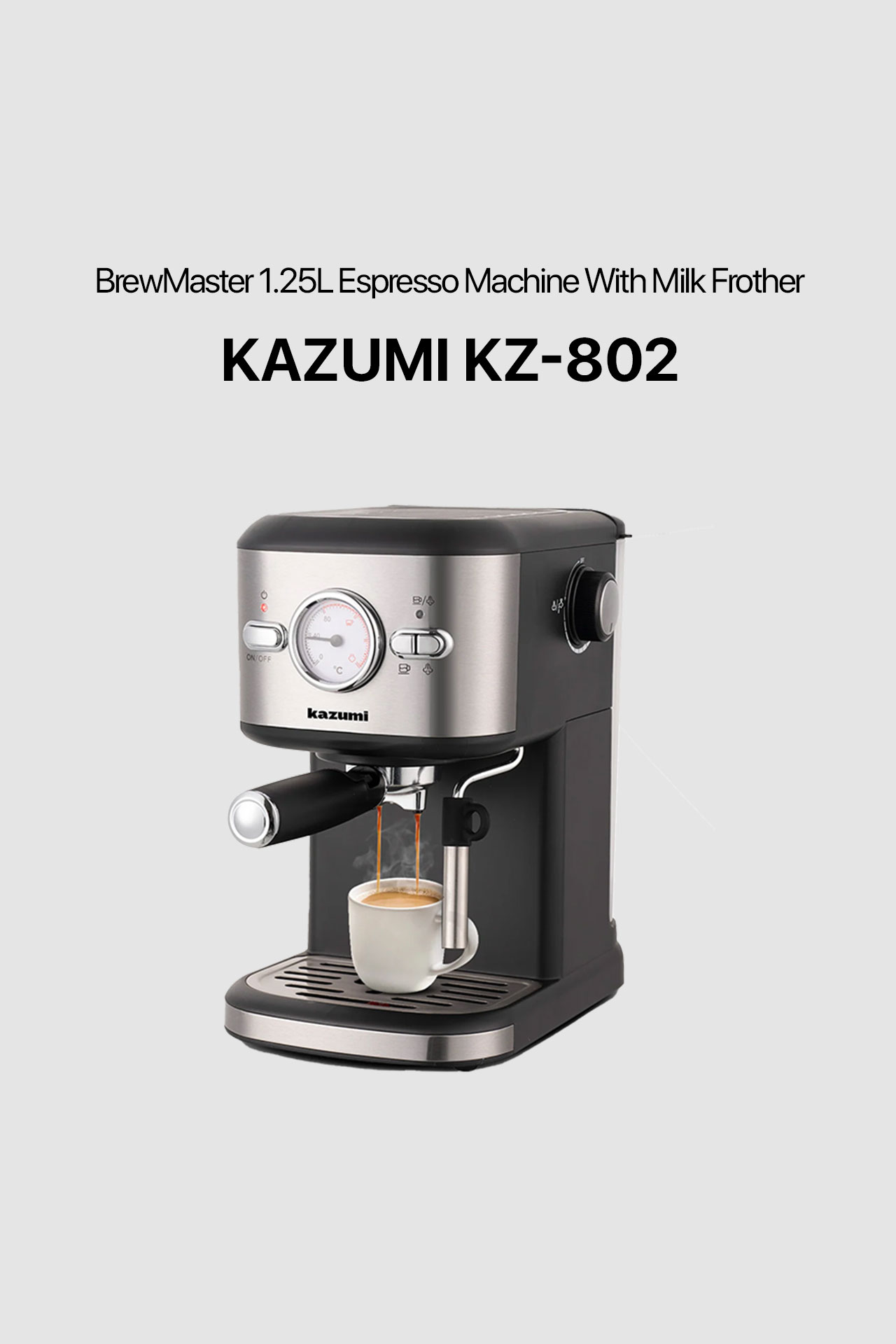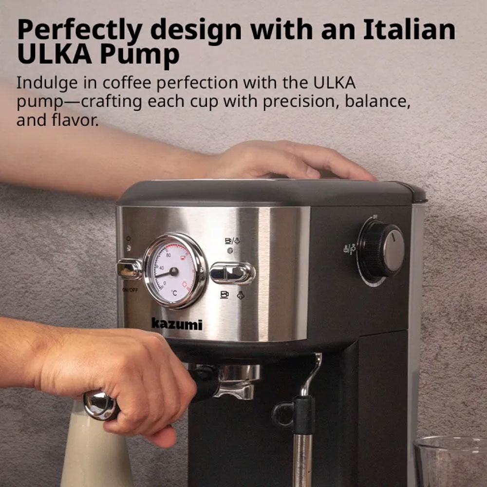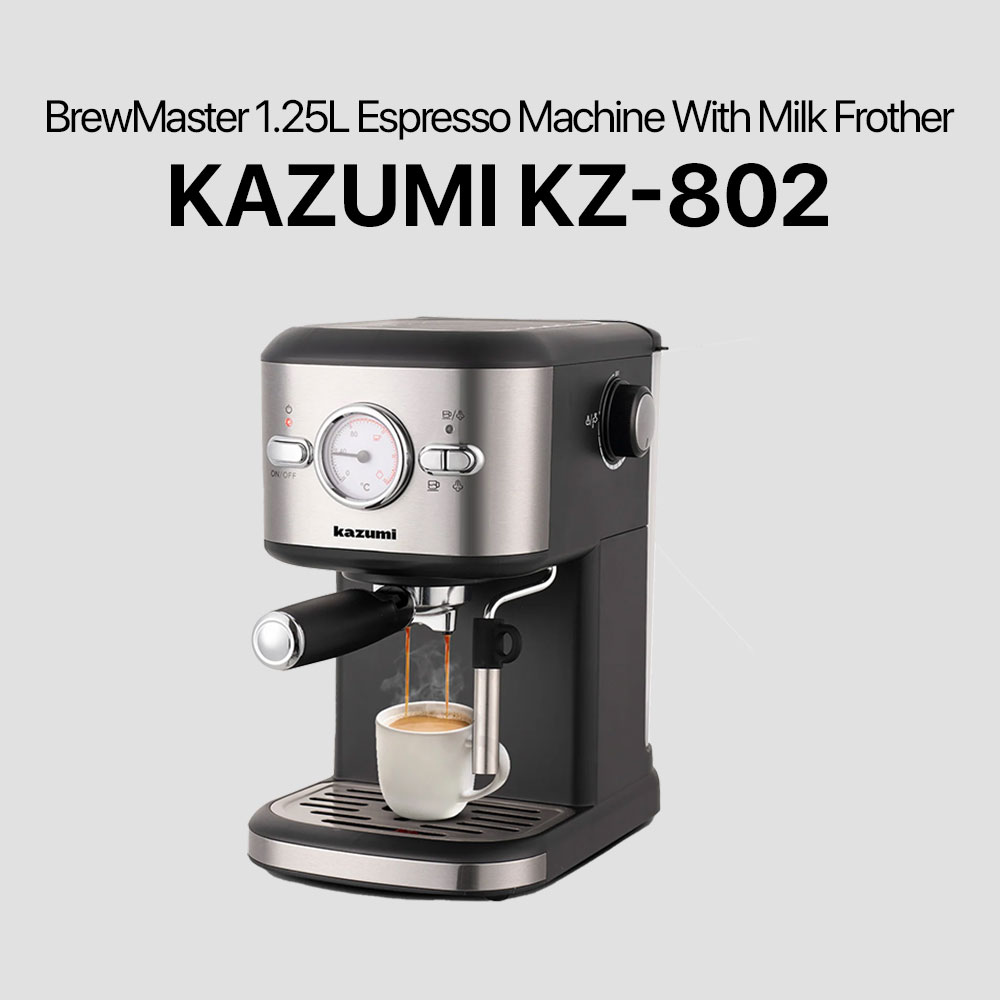 Kazumi KZ-802 BrewMaster 1.25L Espresso Machine with Milk Frother – Black