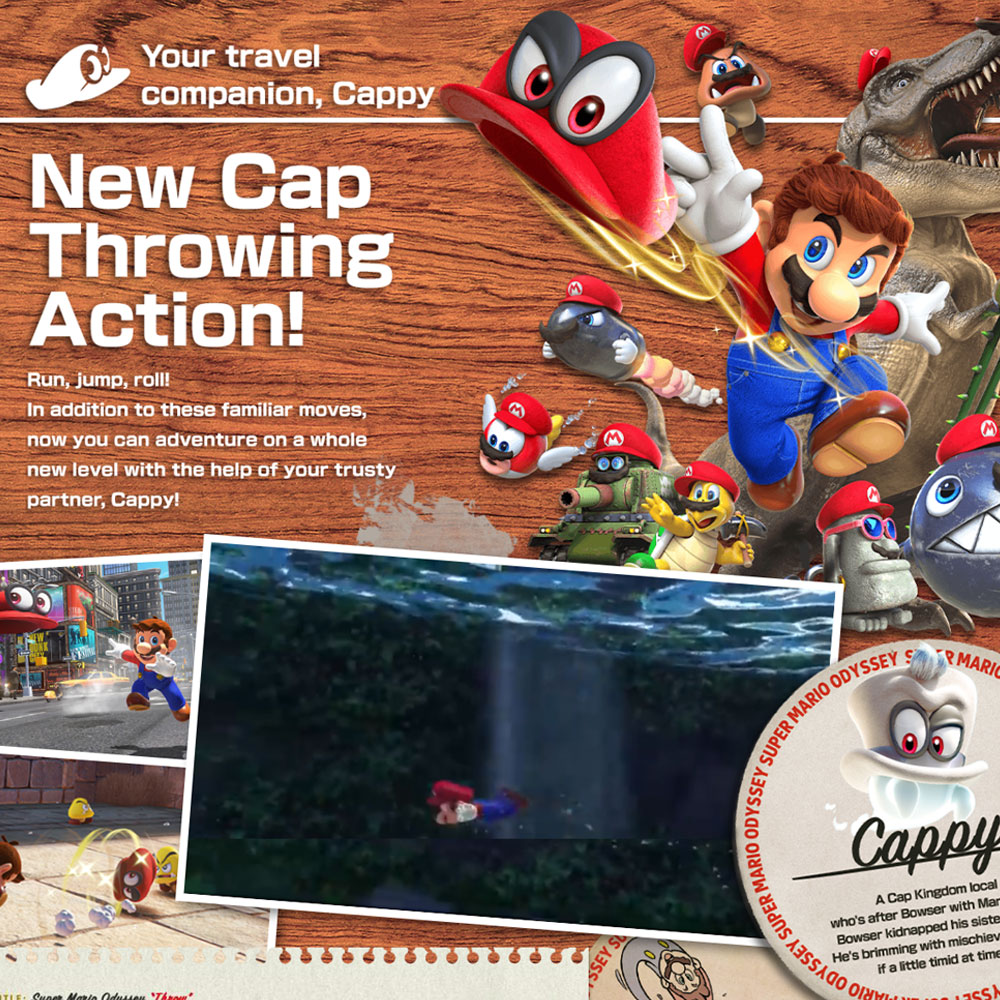 Explore incredible places far from the Mushroom Kingdom as you join Mario and his new ally Cappy on a massive, globe-trotting 3D adventure. Use amazing new abilities—like the power to capture and control objects, animals, and enemies—to collect Power Moons so you can power up the Odyssey airship and save Princess Peach from Bowser’s wedding plans!