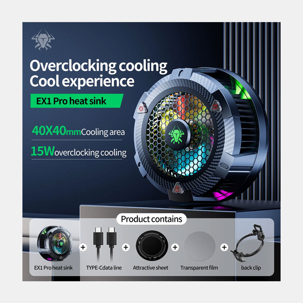 - Accessories : EX1 Pro heat sink, mobile phone back clip, USB charging cable, magnetic suction piece, transparent anti-scratch film.