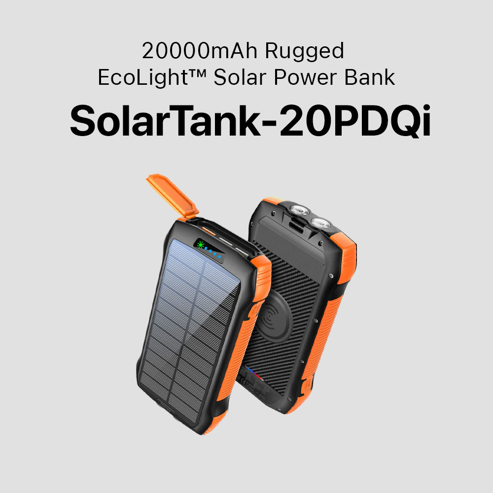 - with the high-capacity 20000mAh Rugged EcoLightâ„¢ Solar Power Bank