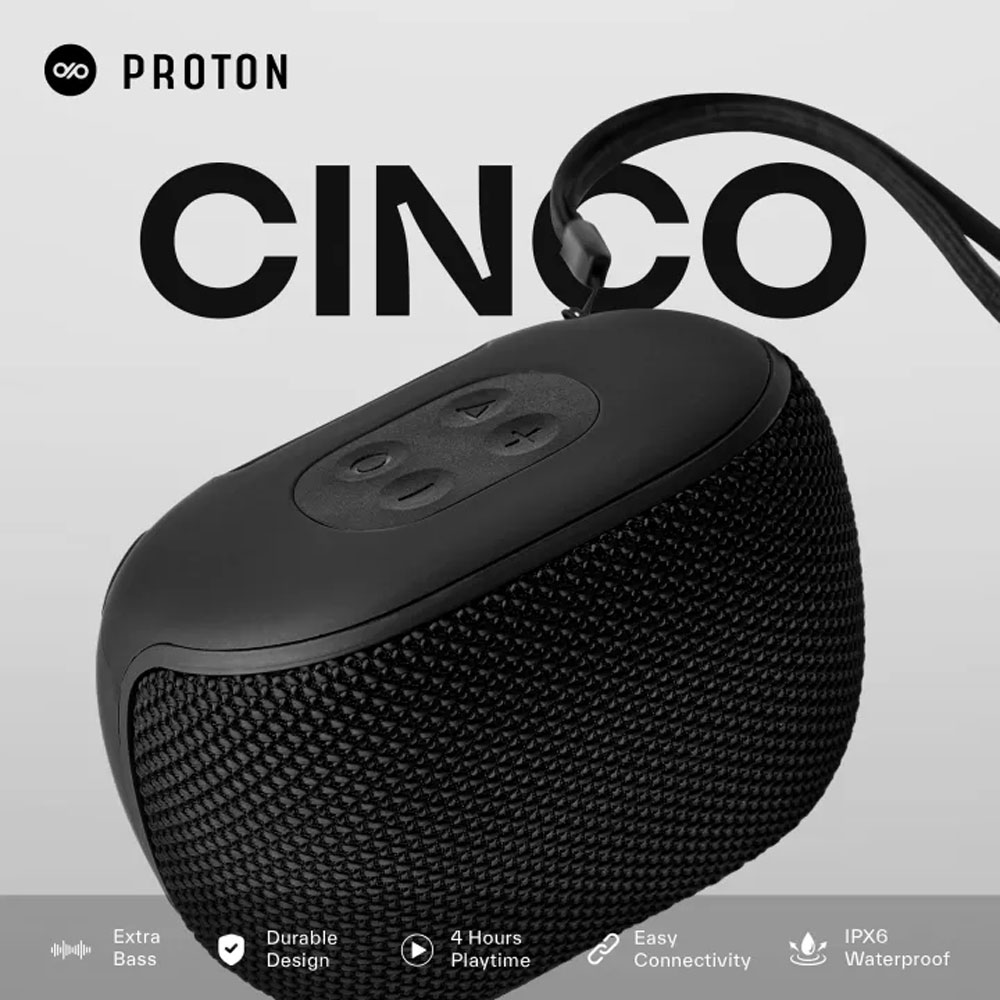 Proton Cinco Water-Resistant Bluetooth Speaker PT-110 – Black