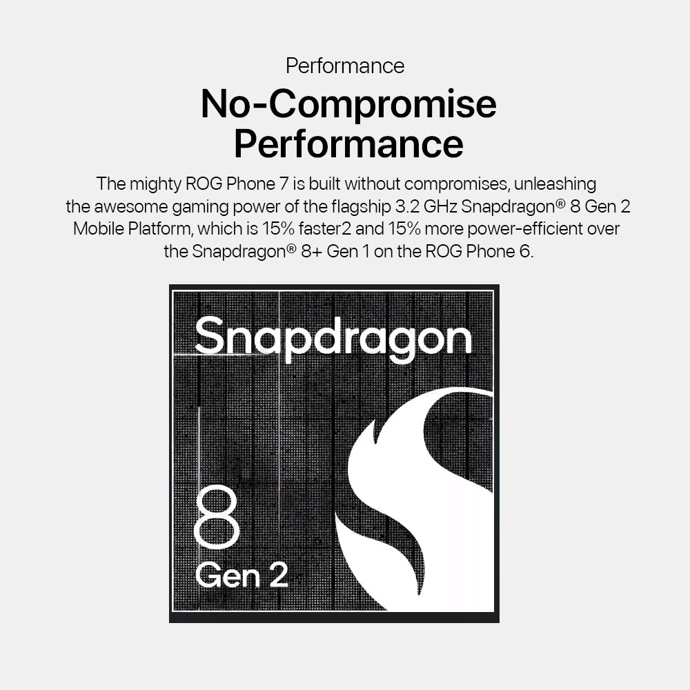 - Qualcomm Snapdragon® 8 Gen 2, SM8550, Qcta-core CPUs,3.2 Ghz