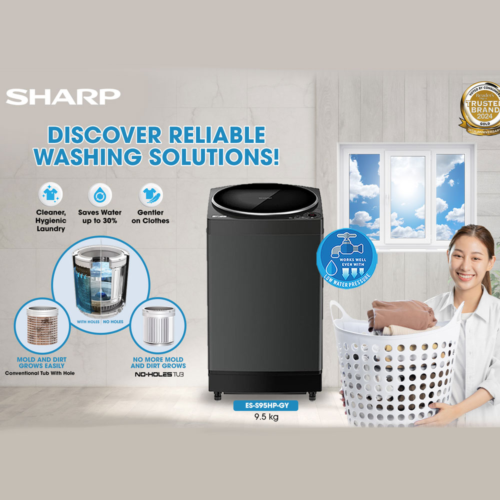 Sharp 9.5 kg No holes Tub Fully Automatic Topload Washing Machine (ES-S95HP-GY)