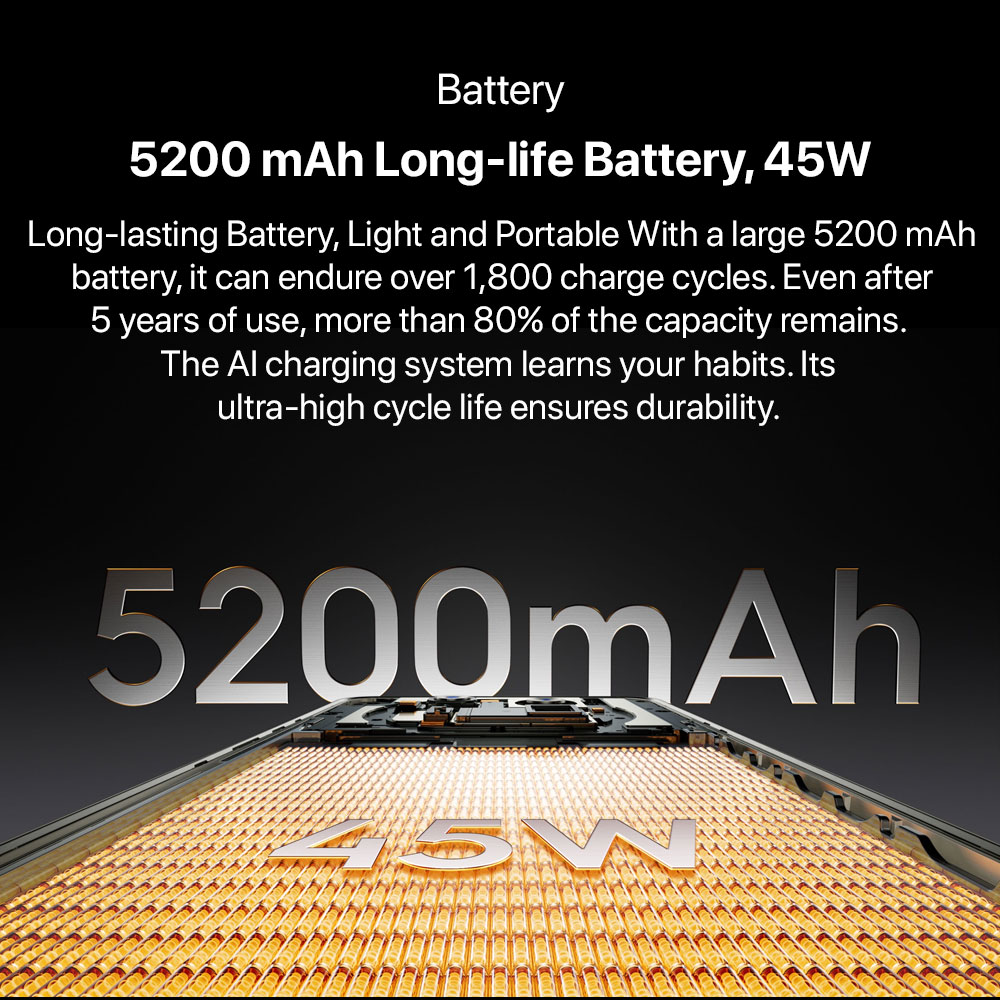 - Battery: 5200 mAh