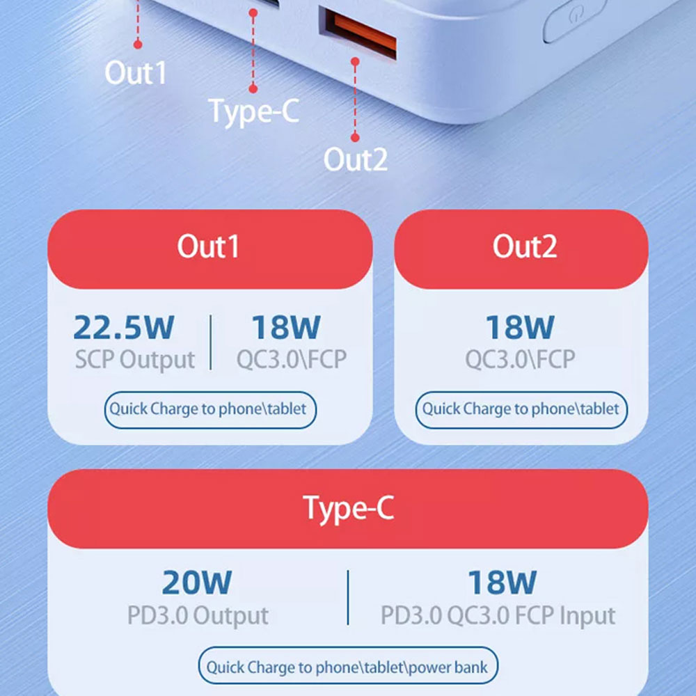 - 22.5W Super Fast Charge PB Support PD/SCP/FCP/QC3.0 w/ Dual Output