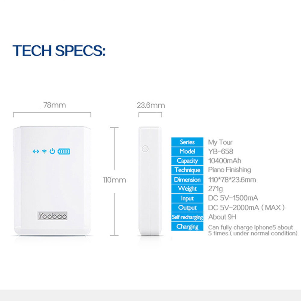 - Capacity: 10,400mAh